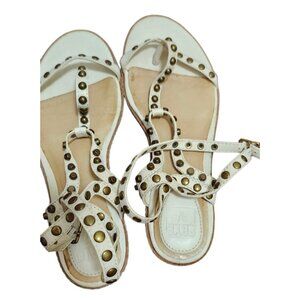 Frye Mary Studded Strap Sandals Women 6.5 The Frye Mary Studded Strap Sandals in women's size 6.5 are a stylish and versatile choice for casual occasions during the spring and summer seasons. Featuring a solid white color with studded accents, these leather sandals have a strappy design with a flat heel for all-day comfort. The high-quality leather lining and insole provide durability and a luxurious feel, making these sandals both fashionable and practical for any wardrobe. Perfect for adding a touch of edgy sophistication to any outfit. Good pre-owned condition. As shown in photos. Color in photos may slightly differ from actual item due to lighting and/or screen setting The wearing photo is borrowed from the store. It’s in a different color, but it can serve as a reference for the silhouette. Reasonable offers are welcome! Any questions/concerns please state in direct messages.