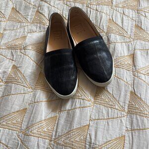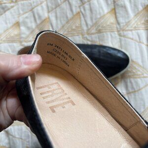 Cute and comfy Frye Melanie slip-ons in black leather. Super soft, easy to throw on, and great for everyday wear. These are a popular style and hard to find in good condition!