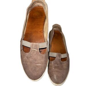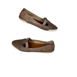 Frye Melanie T Strap Camel Gray Buffed Nubuck Leather Flat, Size 7.5