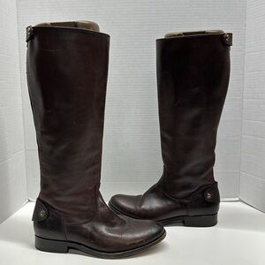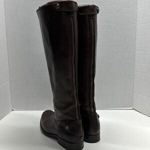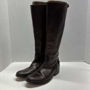 Frye Melissa Button Back Zip Leather Knee High Riding Biker Boots Boot Brown 6