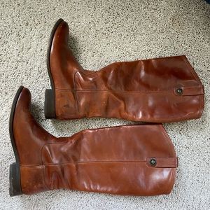 Frye Melissa Button Boot. EUC, only worn a handful of times. Minor scuffs on toes and heels (see photos). Cognac leather. Size 8B.