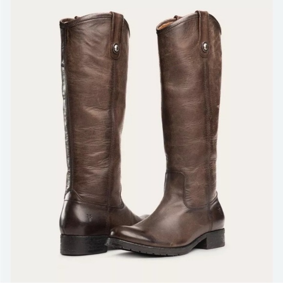 FRYE Melissa button boot, great condition. Gray brown leather, the ultimate riding boot.