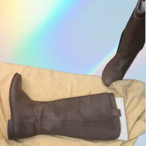 I have rehabbed these lovely Frye leather riding boots. I restored the leather and made them beautiful again. They are a beautiful brown color. The first photo shows the difference between the restored boot on the left and the boot I didn't restore on the right. Now both look like the one on the left, as seen in additional photos. They come with their original shoebox and their own Frye dust bag. Someone needs to buy these and give them a second life. The leather is cleaned, polished, and moisturized and is waterproof after the work I've done on them. They are stunning! Ready for you to wear for years to come!