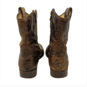 Frye Melissa Button Distressed Leather Glazed Short Zipper Boots - Size 7.5
