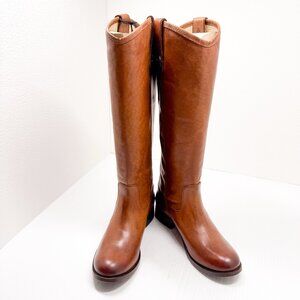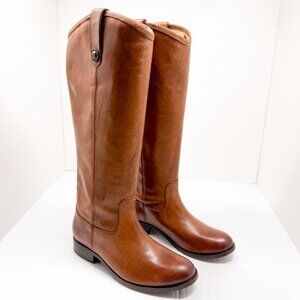 Frye Melissa Button Extended Calf Riding Boots Brown Leather Tall 5.5