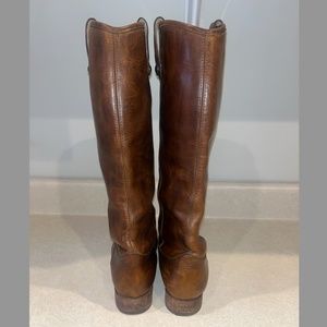 Melissa Button Leather Tall Riding Boots. These riding boots are the perfect boot for the fall and very comfortable. These boots still have MANY years left in them and can even be repaired down the road if ever needed. To maintain the leather, these boots have been cleaned and conditioned 1-2 times a year. It is recommended that they receive a cleaning and some leather oil before this upcoming fall.