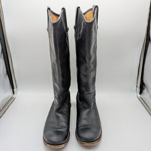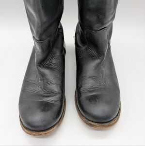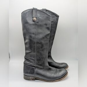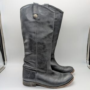Frye Melissa Button Lug Double Sole Black Leather Riding Boot 8.5
