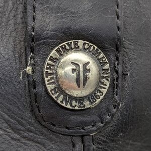 Frye Melissa Button Lug Double Sole Black Leather Riding Boot 8.5. Good condition, some wear on soles (see photos)