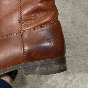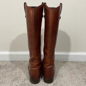 Frye Melissa Button Pull-On Leather Tall Riding Boots Womens Sz 7.5 Cognac Brown