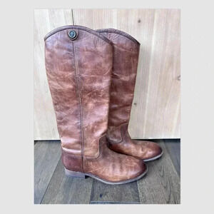 Frye Melissa Button Riding Tall Boots Cognac Brown Size 6 Classic Leather