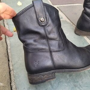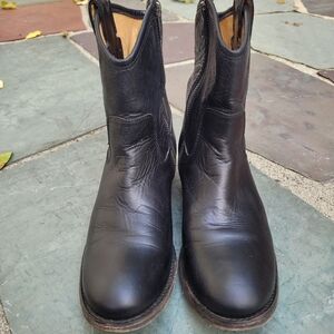 Very nice preowned condition, leather upper, zipper closure, light wear/signs of use, no modeling or trades, western style
