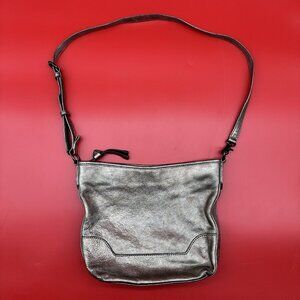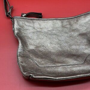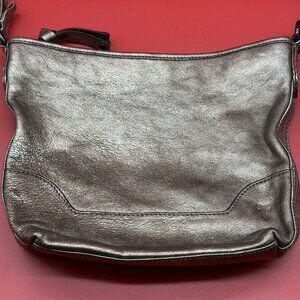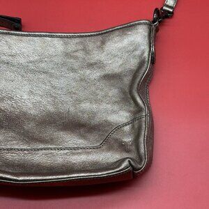 Frye Melissa Hobo Style Small Champagne Metallic Leather Crossbody Bag Purse