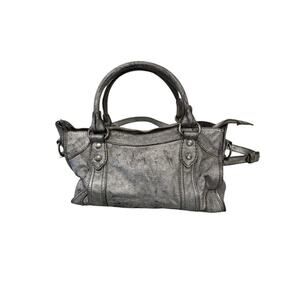 Frye Melissa Satchel/Crossbody Bag Distressed Leather Metallic Gray MSRP $388