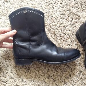 Frye Melissa Studded Boots Black Leather Riding Moto Ankle Booties Sz 8