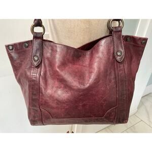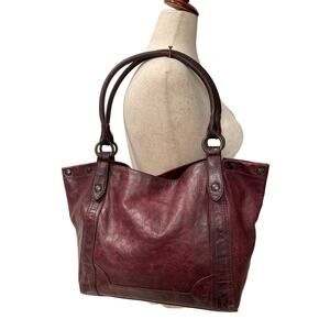 Frye Melissa Wine/Burgundy Leather Shoulder Bag Top Handle Tote Satchel Shopper