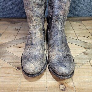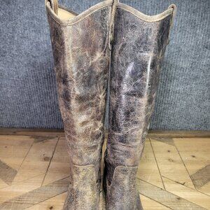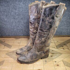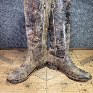 Frye Melissa Women's 7B Distressed Glazed Leather Tall Western Boots Brown 77164