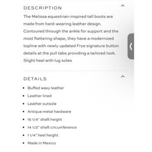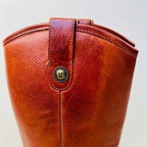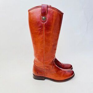 Frye Mellisa Buttons Lug Tall riding boots in brown, Size 6.5