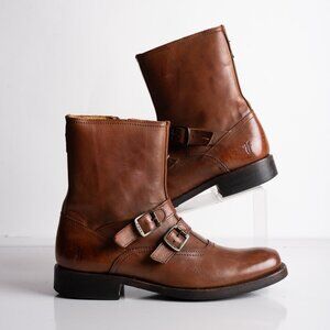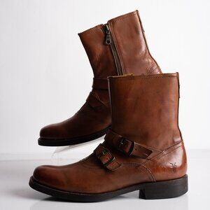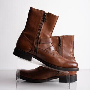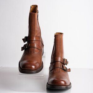 Frye Mens Leather Boots Double Buckle Brown Mid calf Flat US 8.5 87041