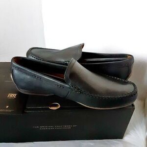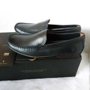 Brand new in box. Please scroll picture for more details. Frye Lewis Venetian Men's US 8.5D (Medium Foot) Black Leather Slip On Loafers Shoes. Pet and smoke free home.