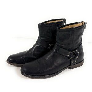 Frye Mens Phillip Harness Moto Biker Boots Size 10 D Back Zip Black Leather