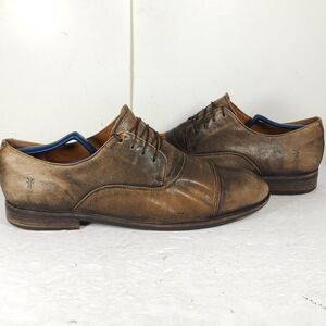 Frye Men's US11,5 Brown Distressed Leather Lace-Up Cap Toe Oxford Shoes