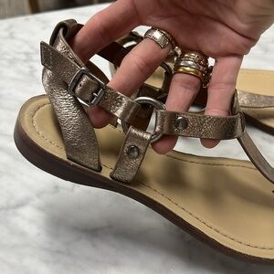 Frye Metallic Leather T-Strap Rachel O Ring Sandal Size