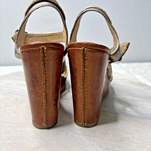 Up for Sale: Frye Metallic Leather Wedge Sandals – Bronze Ankle Strap & Wood Platform 7