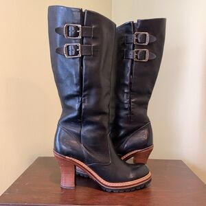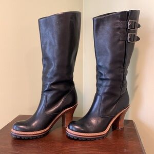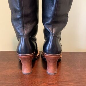 Gorgeous like- new condition leather heeled boot! Soft, super dark brown-nearly black with two accent buckles on the shaft. These are stunning!