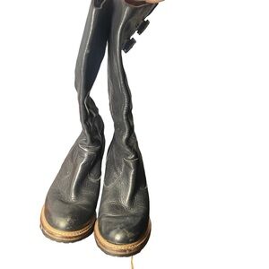 Frye Mildred Engineer Buckle Pull-On Boots Chunky Block Heel Black Women's 9