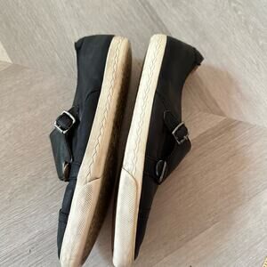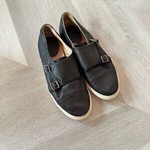 Frye Mindy Double Monk Strap Black Leather Slip-On Sneakers Shoes Size 7.5