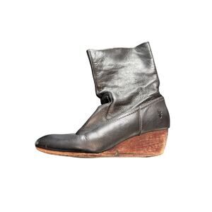 Frye Missy Short Boots Basic Classic Black Leather Wedge Almond Toe Size 10