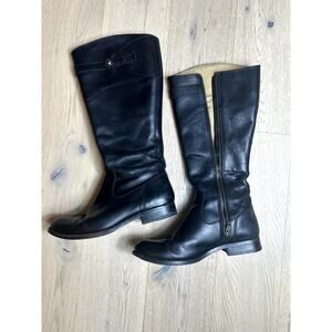 Frye Molly Button Black Leather Riding Boots Equestrian Tall Knee High Zip Up Boot. Condition: good pre-owned.