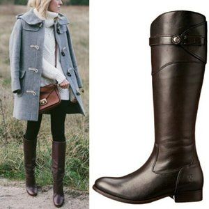 Frye Molly Button Brown Leather Tall Knee High Equestrian Zip Up Vintage Boots