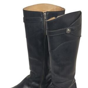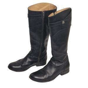 Frye Molly Button Dark Brown Real Leather Knee High Tall Zip Up Riding Boot
