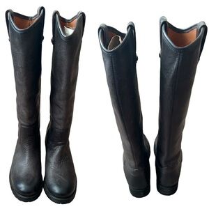 The Melissa equestrian-inspired tall boots are made from hard-wearing leather design. Contoured through the ankle for support and the most flattering shape, they have a modernized topline with newly updated Frye signature button details at the pull tabs providing a tailored look. Slight heel with lug soles.