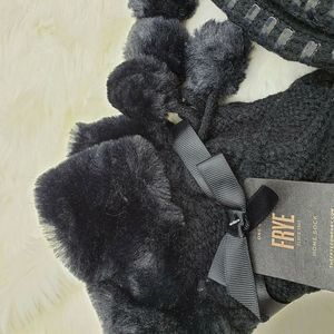 Frye NWT Fuzzy Pom Pom Cable Knit Home Sock