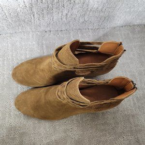 Frye Naomi Pickstitch Women's Size US 9B Brown Suede Strappy Ankle Bootie Boots.