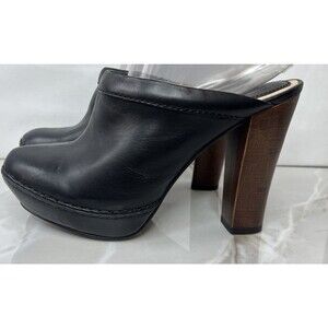Frye Natasha Leather High Heels Pumps Clogs Black Sz 7 M Slip On Shoes Platform