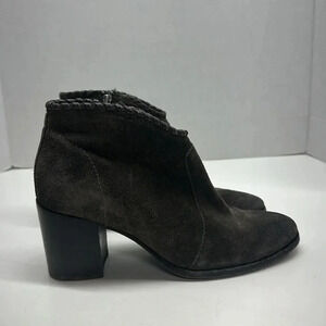 Frye Nora Zip Short Suede High Heeled Ankle Boots Dark Brown Size 8