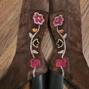 Frye Nova size 6 with embroidered flower detail brand new but without box. These have never been worn. I wish these fit but, they are too small for me. They run a little small as I am a more 6.5 true size. They do not deserve to just sit in a closet waiting for my wish of smaller feet to come true.