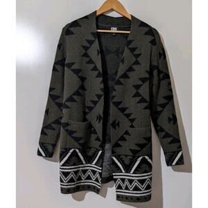 Frye Open Front Cardigan Sweater Womens Medium Aztec Southwestern Green Black Z