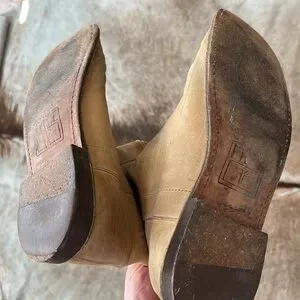 Frye tall riding boots in rare “saddle” color - no longer available online. In used condition, some minor flaws shown in photos. I have not tried to clean the black marks but some rubbed off easily. A leather stain might cover many of the marks. Feel free to ask any questions or make an offer.