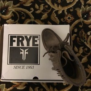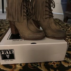 Frye fringe parker ankle lace up boots NEW never been worn distressed leather