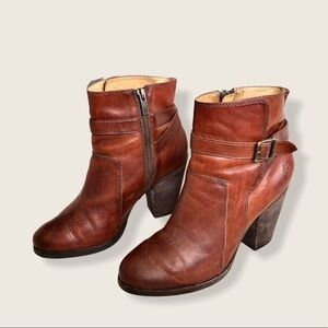 Frye Pattie Cognac Leather Belt Cute Ankle Booties