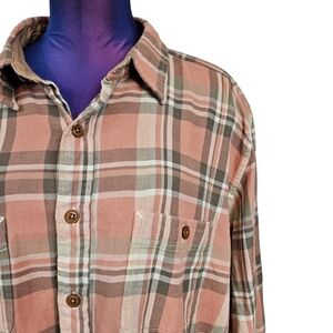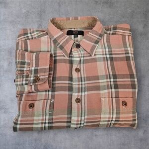 In excellent condition Frye Peach & Tan Button Down Flannel Shirt Size XXL Men's Workwear.