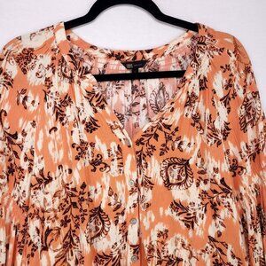 Frye Peasant Blouse Womens Size Large Boho Floral Balloon Sleeve Button Up Top