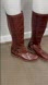 Soft vintage leather, washed and antiqued. Signature solid brass Frye harness right. Soft Vintage leather upper. Leather lined. Leather outsole. Back zip. Features and dimensions: