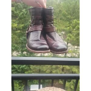 Frye Phillip Harness Short Brown Leather Motorcycle Rear Zip Boots Women's 5.5 B