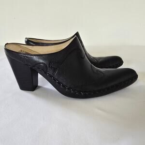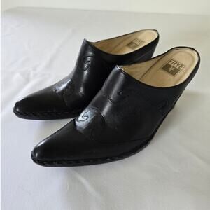Frye Phoenix Black Leather Mule Heels Size 8 Women’s Western Slip-On