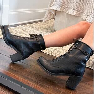 Frye RARE Vintage Karen Black Leather Lace Up Combat Boots